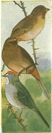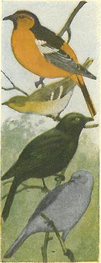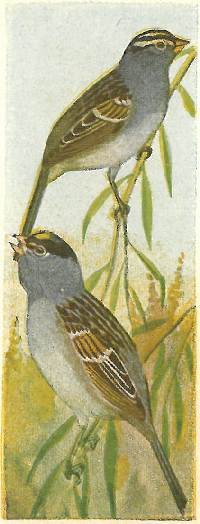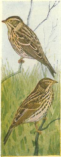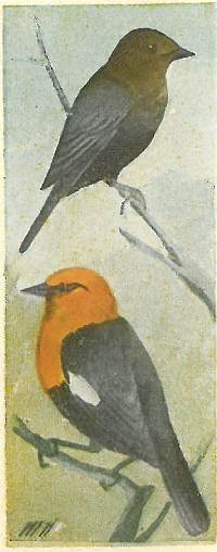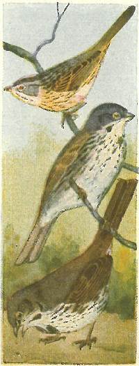 Range.—Alaska to Mexico, breeding in its extreme northern range. These birds are noted for their sweet and musical song, which may be heard from the swamps and thickets in which they make their home. They nest either on or near the ground, building it of shreds of vines, leaves and grasses. Four bluish green eggs, unmarked, are usually laid (.85 × .65).