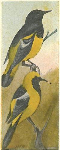 Range.—Western North America, British Columbia to Lower California. A small bird, with a black throat and breast, forming a circle about the neck, and black on top of the head. They are found mostly in the woodlands, bordered with thickets, in which they will place their nests, within a few feet of the ground. It much resembles that of the Yellow Bird, being compact and made of the same materials. Three or four eggs are creamy white, spotted with brown, forming a wreath about the larger end (.65 × .52).