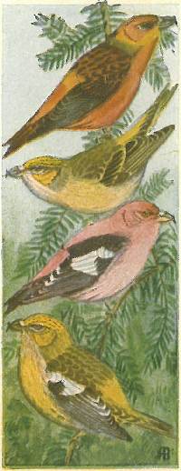 Range.—North America, mostly east of the Rockies, but found in the Rockies from Alaska to Colorado. They nest on the lower branches of coniferous trees, made of roots and strips of vine, and lined with feathers and lichens. Four dull white eggs, spotted with brown (.72 × .50).