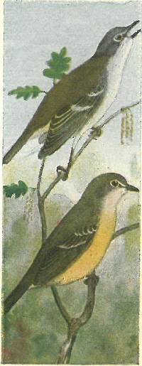 These are nearly as common as the above, but probably not as well known, as they keep well up in the tops of the taller trees, where they also build their nests, very much the same as the Red-eye. Their song is much more pleasant. Four eggs, like above (.72 × .52).