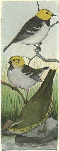 Range.—Mostly in the eastern part of North America, but occasionally in the southern Rockies, Texas and Arizona. Black throat and breast, with bright yellow cheeks and olive head and back (not illustrated).