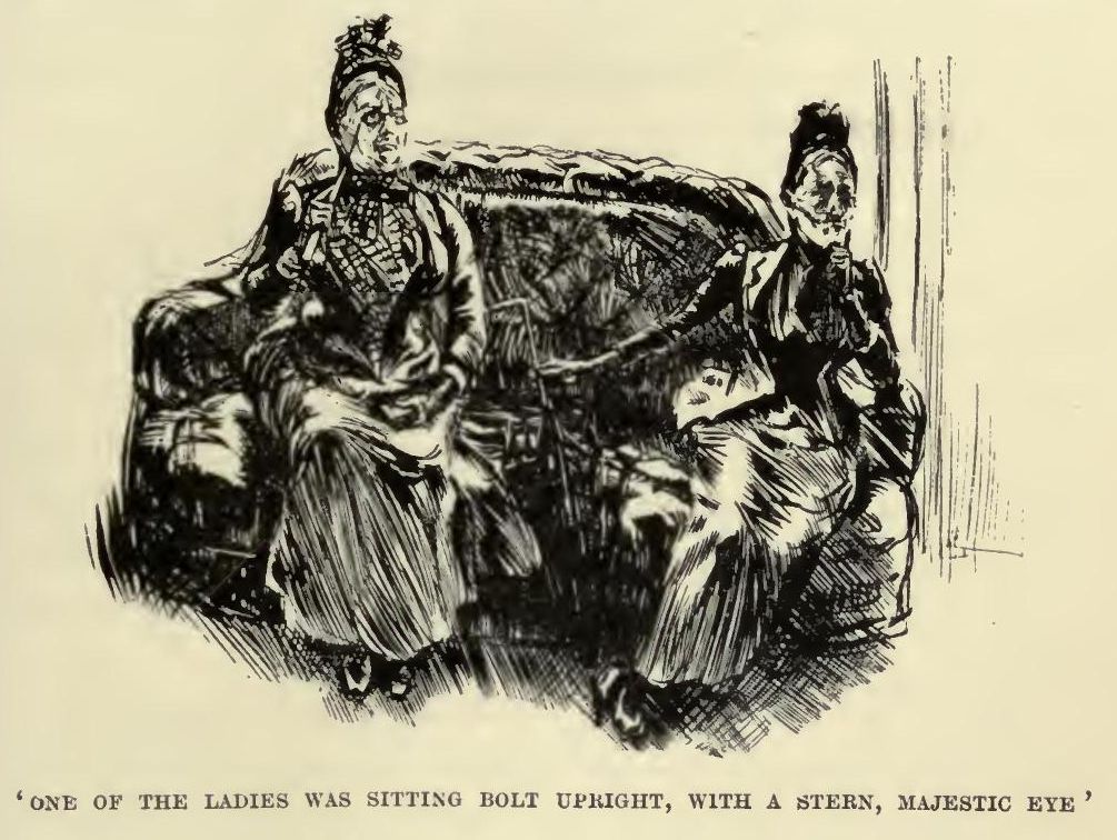 Then the eldest Miss Mafferton put one end of a long black speaking-trumpet into my hand, and Mr. Mafferton, seeing her do this, applied the other to his ear. I had nothing whatever to say, but, overcome with the fear of seeming rude, I was raising it to my lips and thinking hard when I felt two anxious hands upon my arm. 'Do excuse us!' exclaimed a Miss Mafferton, 'but if you wouldn't mind holding it just a little farther from your lips, please! We are obliged to tell everybody. Otherwise the voice makes quite a distressing noise in his poor ears.' At which every semblance of an idea left me instantly. Yet I must say something—Mr. Mafferton was waiting at the other end of the tube. This was the imbecility I gave expression to. 'I came here in a cab!' I said. It was impossible to think of anything else.