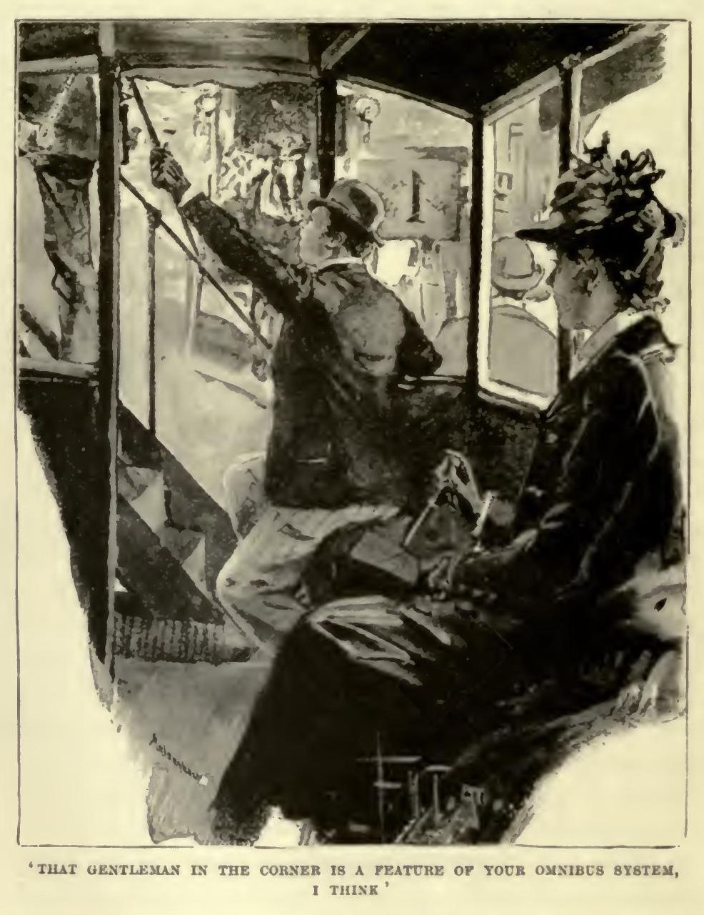 I did not think, before, that anything could wobble like an Atlantic steamer, but I experienced nothing more trying coming over than that Hammersmith 'bus. And there were no straps from the roof to hold on by—nothing but a very high and inconvenient handrail; and the vehicle seemed quite full of stout old gentlemen with white whiskers, who looked deeply annoyed when I upset their umbrellas and unintentionally plunged upon their feet. 'More room houtside, miss!' the conductor said—which I considered impertinent, thinking that he meant in the road. 'Is there any room on top?' I asked him, because I had walked on so many of the old gentlemen's feet that I felt uncomfortable about it. 'Yes, miss; that's wot I'm a-sayin'—lots o' room houtside!' So I took advantage of a lame man's getting off to mount the spiral staircase at the back of the'bus and take a seat on top. It is a pity, isn't it, that Noah didn't think of an outside spiral staircase like that to his ark. He might have accommodated so many more of the animals, providing them, of course, with oilskin covers to keep off the wet, as you do. But even coming from a bran new and irreverent country, where nobody thinks of consulting the Old Testament for models of public conveyances, anybody can see that in many respects you have improved immensely upon Noah.
