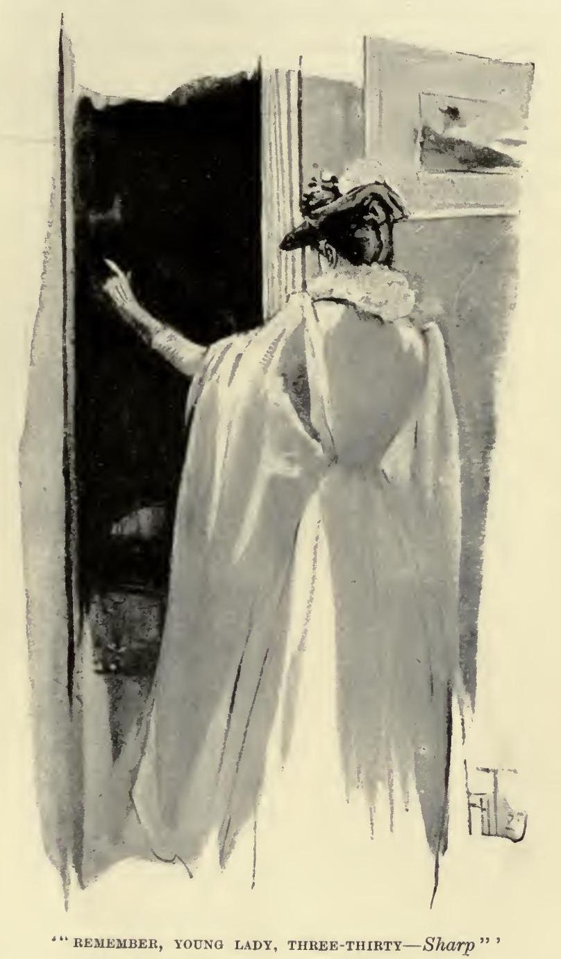 'I must really go!' I said precipitately. 'I—I promised Lady Torquilin to be home early '—noting with despair by the gold clock under glass on the mantel that it was only a quarter to ten—'and the American mail goes out to-morrow—at least, I think it does—and—and Good-night, Mrs. Mafferton! Goodnight, Mr. Mafferton!' I said it very rapidly, and although they were all kind enough to meet my departure with protest, I think it was evident to them that for some reason or other I really must go. The young ladies exchanged glances of understanding. I think their idea was that I dreaded the embarrassment of meeting Mr. Charles Mafferton before his family. Two of them came upstairs with me to get my wraps, and assured me in various indirect ways that they quite understood—it was awkward.