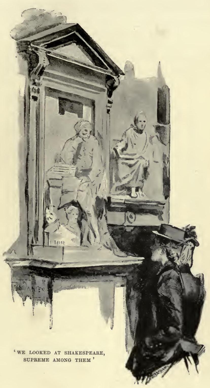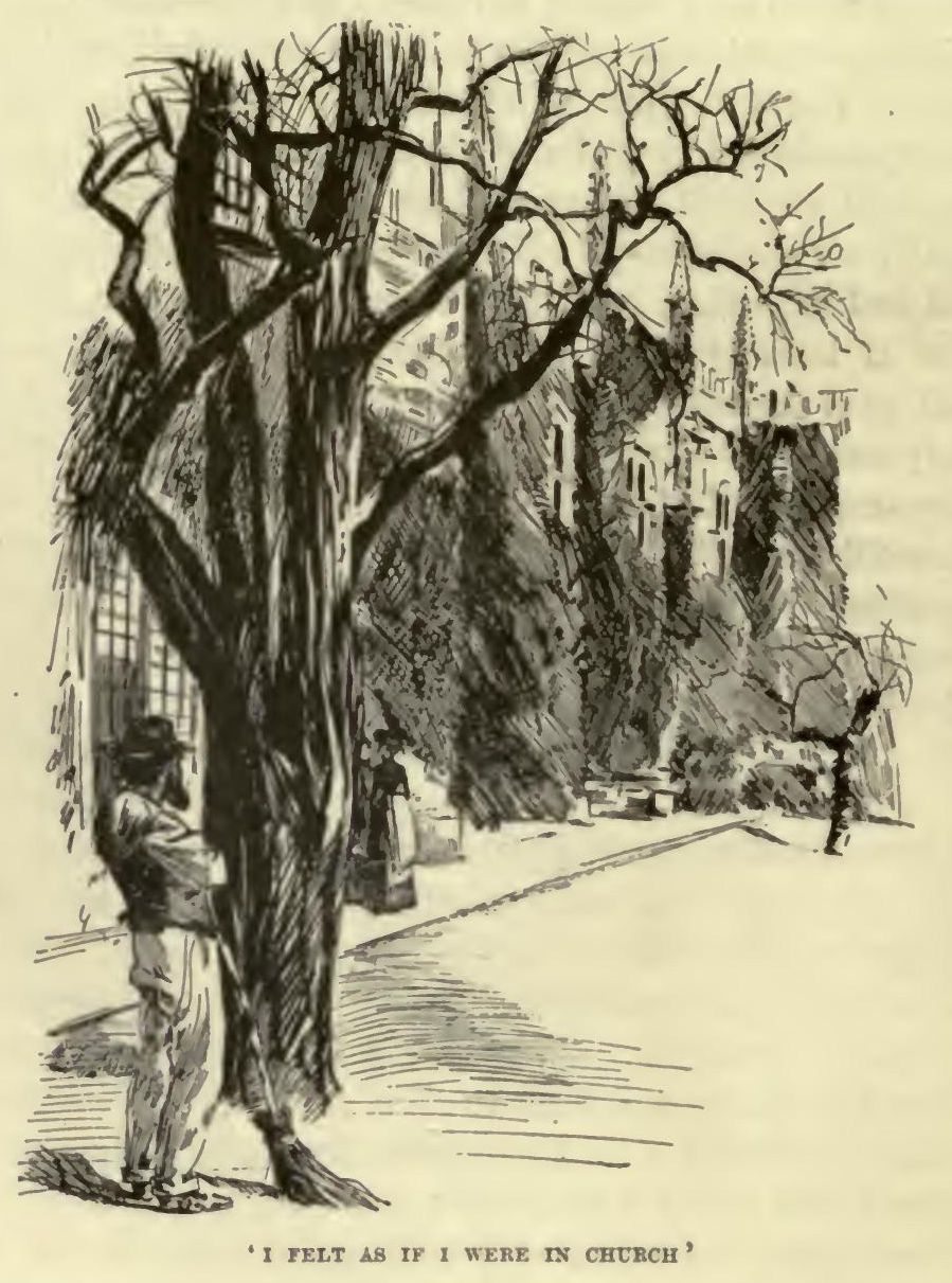 Just before sailing the purser supplied me with dear consolation in the shape of a letter from Miss Peter Corke. It was a 'characteristic' letter, as we say when we want to say a thing easily—bewailing, advising, sternly questioning, comically reprobating, a little sad and deprecating by accident, then rallying to herself again with all sorts of funny reproaches. 'I meant to have done so much, and I've done so little!' was the burden of it, recurring often—'I meant to have done so much, and I've done so little!' Dear Peter! She can't possibly know how much she did do, though I'm taking my unformed mind back to a comparatively immature civilisation, and shall probably continue to attend a church where they use spring-edged cushions and incandescent burners. Peter's England will always be the true England to me. I shall be able to realise it again easily with some photographs and Hare's 'Walks in London,' though I am afraid I have got all her delightful old moss-grown facts and figures mixed up so that I couldn't write about them over again without assistance as intelligently as before. And Peter says she doesn't mind going on in my second volume, if only I won't print it; which is very good of her when one thinks that the second volume will be American, and never written at all, but only lived, very quietly, under the maples at Yale. I hope she may be found in the last chapter of that one too. Dear Peter!