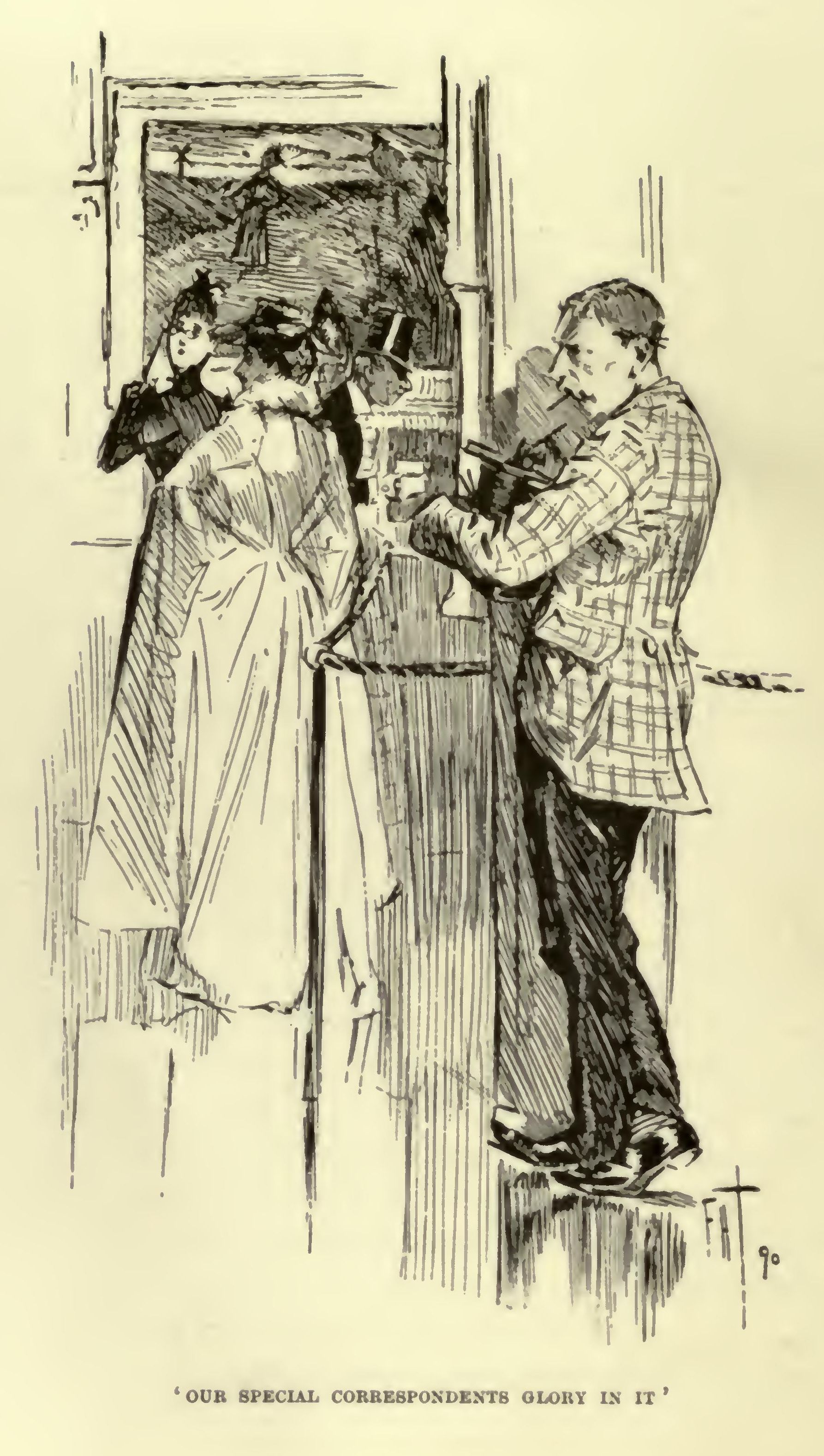 'Child, child,' returned Lady Torquilin, impressively, 'in the coming fortnight we have barely time! You must know that we don't do things by steam and electricity in this country. You can't go to Court by pressing a button. We haven't a moment to lose. And as to other arrangements, we must just give everything up, so as to have our minds free and comfortable till we get the whole business over.' Afterwards, about the seventh time I had my Court dress tried on, I became convinced that Lady Torquilin was right. You do nothing by steam and electricity in this country. I found that it took ten days to get a pair of satin slippers made. Though, 'of course, if you were not quite so particular, miss, about that too, or if you 'ad come about them sooner, we could 'ave obliged you in less time,' the shoemaker said. In less time! A Chicago firm would have made the slippers, gone into liquidation, had a clearing sale, and reopened business at the old stand in less time!