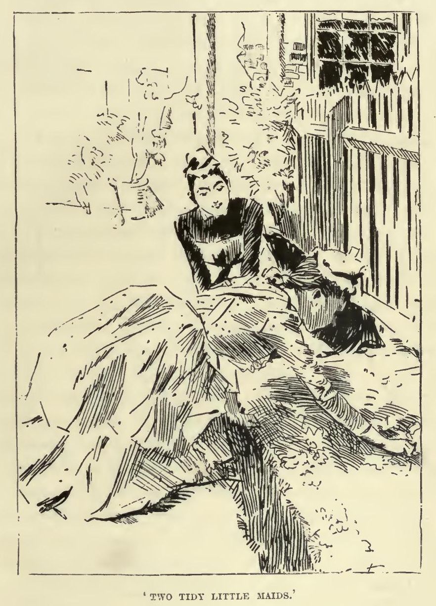 Down below, in the meantime, out came two tidy little maids in cap and apron, and began to weed and to potter about two tidy little plots—their own little gardens anybody might know by the solicitude and the comparisons they indulged in—the freedom, too, with which they pulled what pleased themselves. It was pretty to see the little maids, and I fell to conjecturing such a scene in connection with the domestic duchess of Chicago, but without success. Her local interest could never be sufficiently depended upon, for one thing. Marguerite might plant, and Irene might water, but Arabella Maud would certainly gather the fruits of their labour, if she kept her place long enough. And I doubt if the social duties of any of these ladies would leave them time for such idylls.
