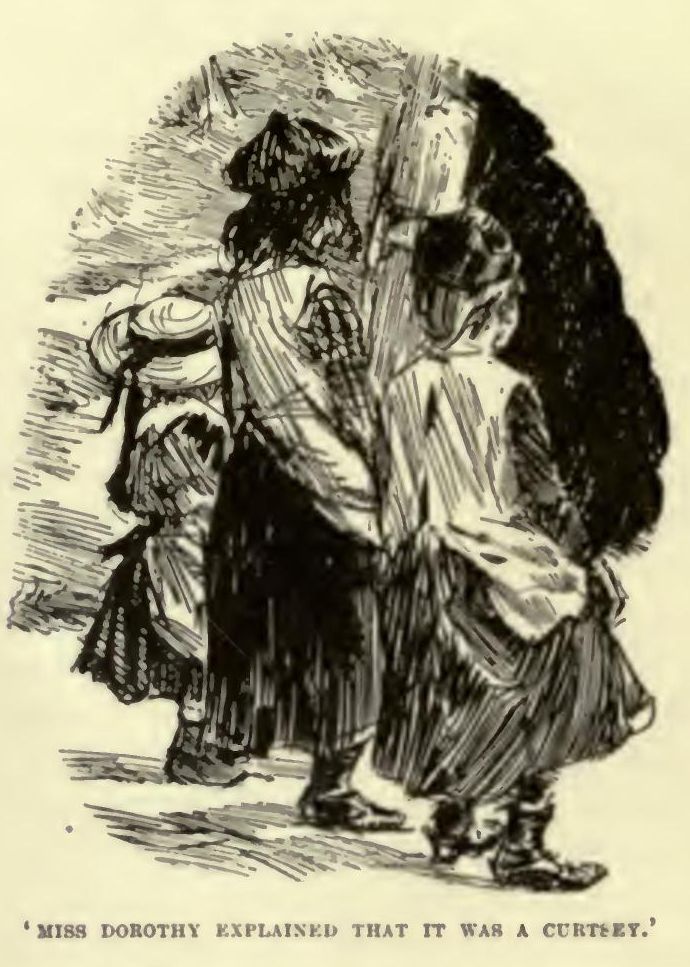 On the way back through the village of Hallington we met several stolid little girls by ones and twos and threes, and every little girl, as we approached, suddenly lowered her person and her petticoats by about six inches and brought it up again in a perfectly straight line, and without any change of expression whatever. It seemed to me a singular and most amusing demonstration, and Miss Dorothy explained that it was a curtsey—a very proper mark of respect. 'But surely,' she said, 'your little cottager girls in America curtsey to the ladies and gentlemen they meet!' And Miss Dorothy found it difficult to understand just why the curtsey was not a popular genuflection in America, even if we had any little cottager girls to practise it, which I did not think we had, exactly.