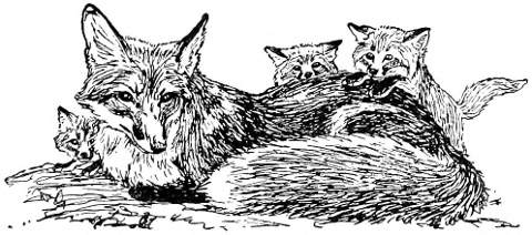 As the young foxes grew in strength and enterprise, life became more exciting for them. The mother still did her hunting by night, and still rested by day, keeping the youngsters still close about the door of the burrow. In her absence they kept scrupulously out of sight, and silent; but while she was there basking in the sun, ready to repel any dangerous intruder, they felt safe to roam a little, [35] along the top of the bank and in the fringes of the thickets.