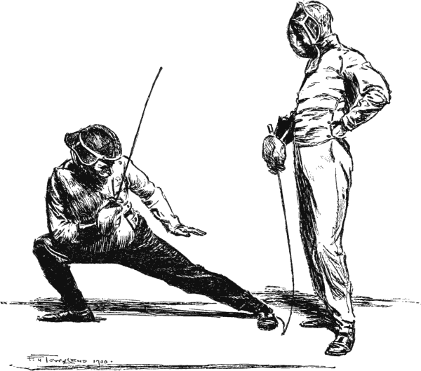 One evening—I quite forget how it came about—we found ourselves talking about fencing. Some one’s casual remark, as erratic as the blue wreaths of smoke that floated vaguely towards the ceiling, was taken up by some one else, and led to other remarks, which gradually became more definite and finally solidified into a conversation.