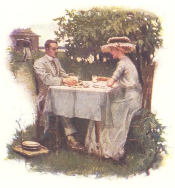 She found him, clad only in shirt and trousers, leaning against the side of the cabin, and staring shoreward. She divined his frank smile, and smiled in return.