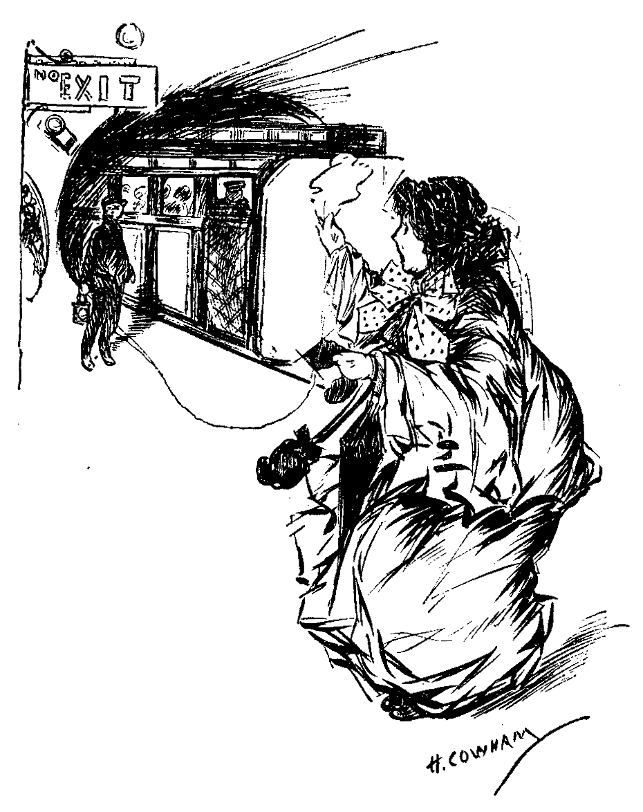 We went down in a corridor train, where I collected quite a lot of money. When the train stopped half-way there, I jumped out for a mouthful of air, and there, on the platform, was a black retriever wearing a collecting box like mine! I asked him what he meant by it, and, as he didn't explain himself, I went for him, and stood him upside down; and in the scrimmage half a crown fell out of his collecting box. Everybody thought that it had fallen out of mine; Mabel was sure it had; so it was given to me. You should have seen that retriever when I smiled at him from the carriage window.