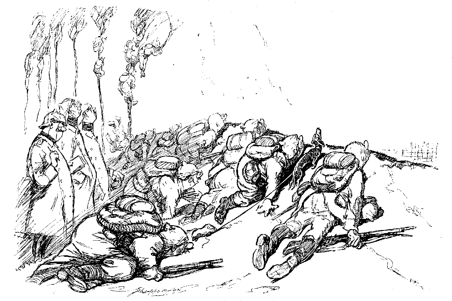 "'Twould seem so. But, as the Sergeant pointed out, the Germans is by birth an' natur' land-fighters, an' must so be met, trained man to trained man. Meaning Territorials."