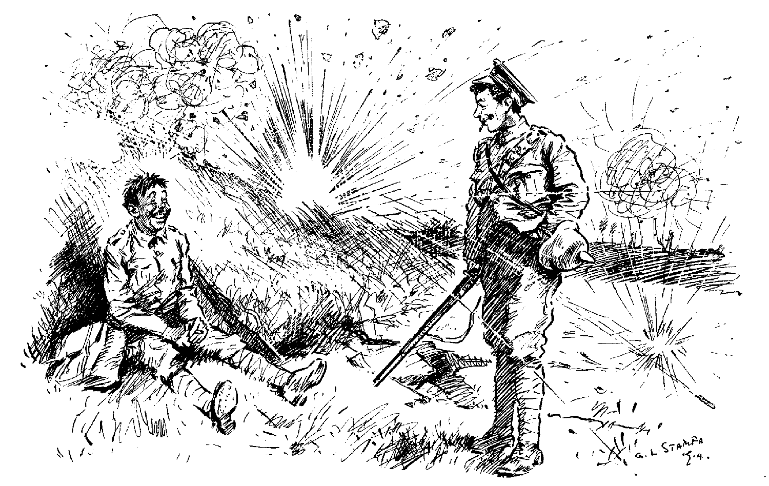McTavish (to convalescent soldier). "I was hearin' ye had a bullet in ye yet. Are ye no gawn ta hae it taen oot?"