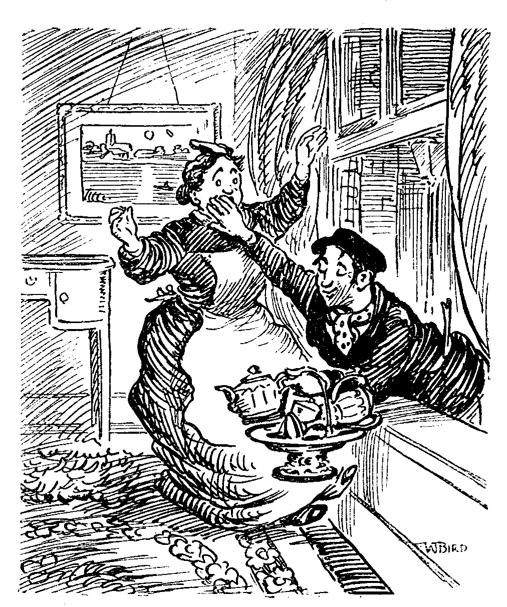 The day after our home-coming my box and I were marched to the committee. I've had some bad times there, but nothing quite so bad before. The way an old girl gushed about the "darlings" (whoever they were) parting with their jewellery simply wearied me. As soon as Mabel felt strong enough to walk we went home. She seemed to forget that the haul was entirely due to me. Yet she's a wonderful memory for some things. Ever since breakfast to-day she's done nothing but talk about a daring robbery at Winklebeach, and looks at me in the most extraordinary manner. I don't know what Winklebeach may be, but it's as clear as daylight that she's thinking of the six sweet biscuits that I stole behind her back at her last "At home." But how did she find out?