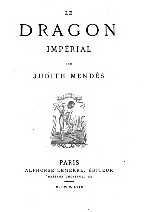 Yo-Men-Li s'interrompit brusquement; son visage prit une expression d'épouvante admirative, et ses larmes, en un instant, se séchèrent; car elle venait d'apercevoir dans le lac clair le reflet net d'un dragon ailé, et, tout aussi bien que le poëte Ko-Li-Tsin, elle savait que «si l'ombre d'un homme prend la forme d'un dragon qui suit humblement les pas de son maître, cet homme tiendra un jour dans sa main la poignée de jade du sceptre impérial.»