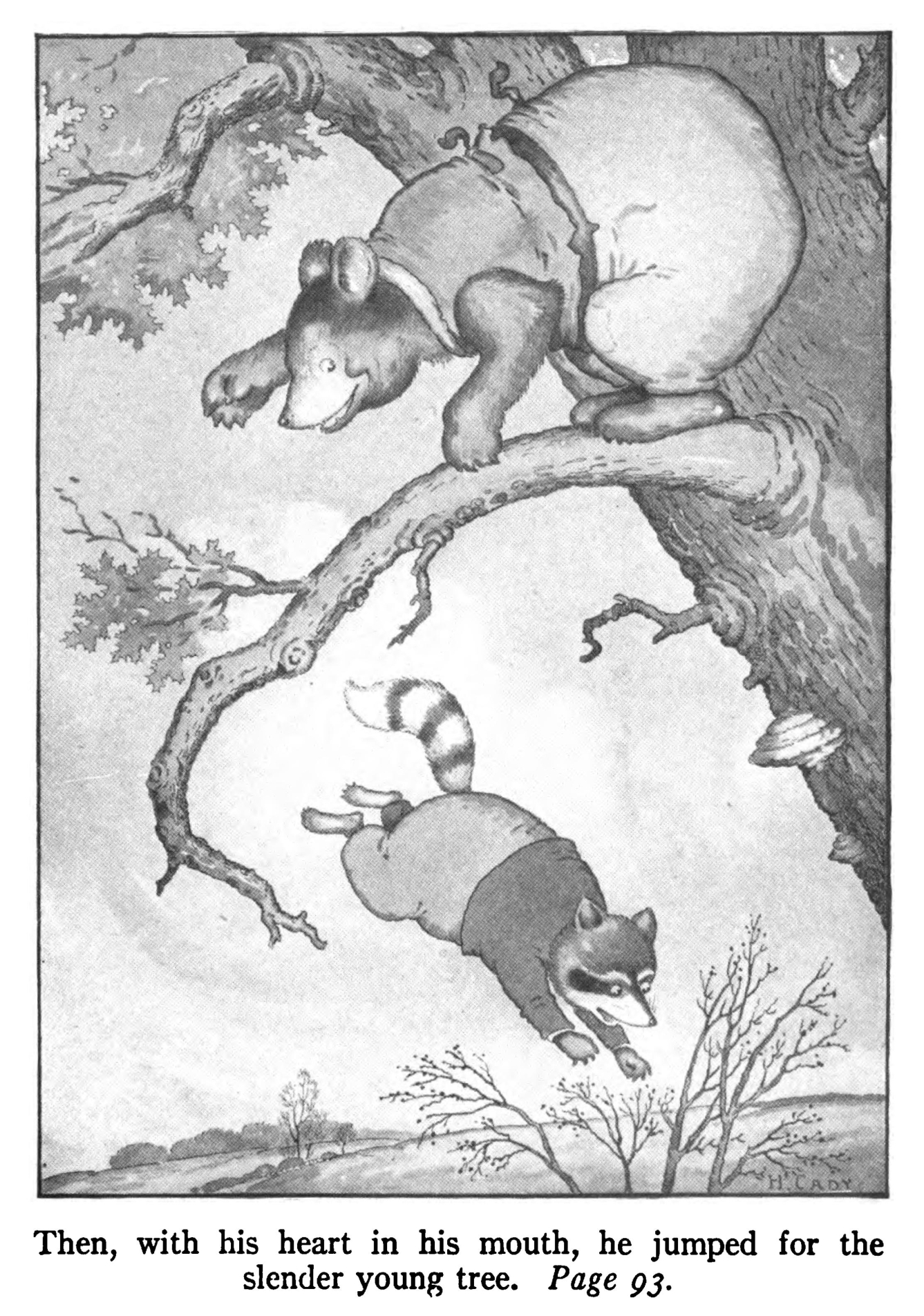 POOR, poor Bobby Coon. Now he was sure that he was really and truly awake, he almost wished that he hadn't tried to find out. It would have been some little comfort to have been able to keep his first feeling that maybe it was all a bad dream. But now that he knew positively he was awake, he knew that this terrible pounding, which at first had been part of that bad dream, was also real. The truth is, he could no longer doubt that something terrible was happening to his house, the big hollow chestnut-tree he had lived in so long.
