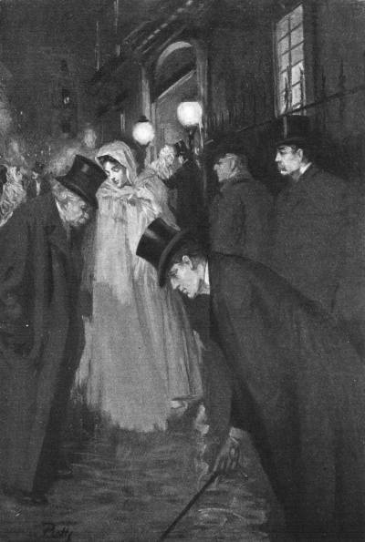 General Brandon immediately looked down on[8] the wet sidewalk for the trinket, a search in which he was joined by both Pelham and Darrell. Clavering, who was in the shadow, did not move, but his eyes followed every movement of the group. Elizabeth unconsciously brushed against him. There was some mud on his boots, and it became transferred to her white muslin skirts, which she let fall in the anxiety of her loss. The trinket, it would seem, had fallen at their very feet, but it was not to be found. Elizabeth’s eyes filled with tears, and she mourned for her little pearl heart as if it had been a lost child.
