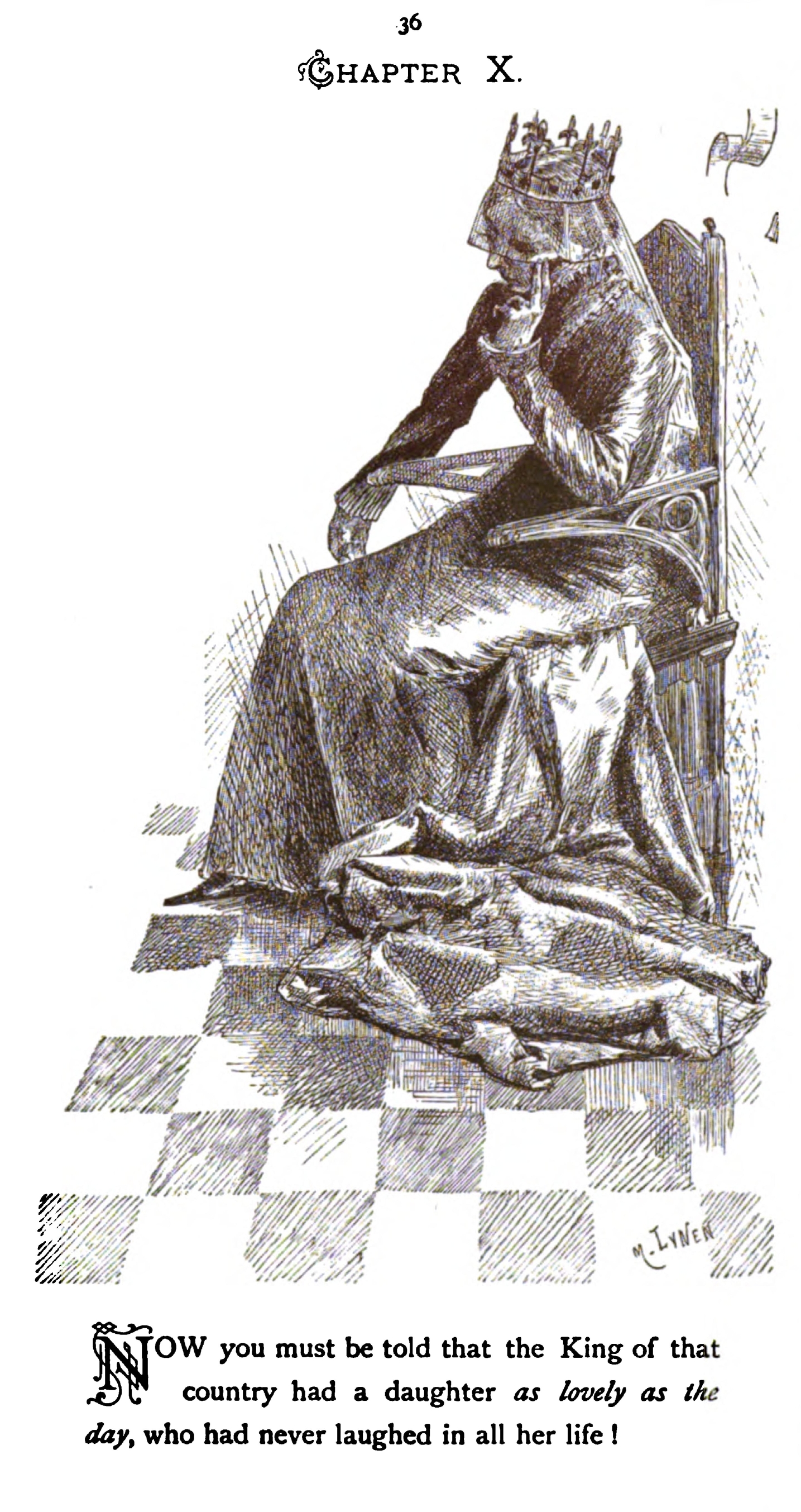 NOW you must be told that the King of that country had a daughter as lovely as the day, who had never laughed in all her life!