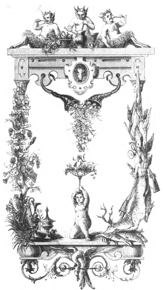 AT the request of several persons of distinction, who have visited the Reform Club,—particularly the ladies, to whom I have always made it a rule never to refuse anything in my power, for indeed it must have been the fair sex who have had the majority in this domestic argument to gain this gastronomical election,—Why do you not write and publish a Cookery-book? was a question continually put to me. For a considerable time this scientific word caused a thrill of horror to pervade my frame, and brought back to my mind that one day, being in a most superb library in the midst of a splendid baronial hall, by chance I met with one of Milton’s allegorical works, the profound ideas of Locke, and several chefs-d’œuvre of one of the noblest champions of literature, Shakspeare; when all at once my attention was attracted by the nineteenth edition of a voluminous work: such an immense success of publication caused me to say, “Oh! you celebrated man, posterity counts every hour of fame upon your regretted ashes!” Opening this work with intense curiosity, to my great disappointment what did I see,—a receipt for Ox-tail Soup! The terrifying effect produced upon me by this succulent volume made me determine that my few ideas, whether culinary or domestic, should never encumber a sanctuary{viii} which should be entirely devoted to works worthy of a place in the Temple of the Muses.
