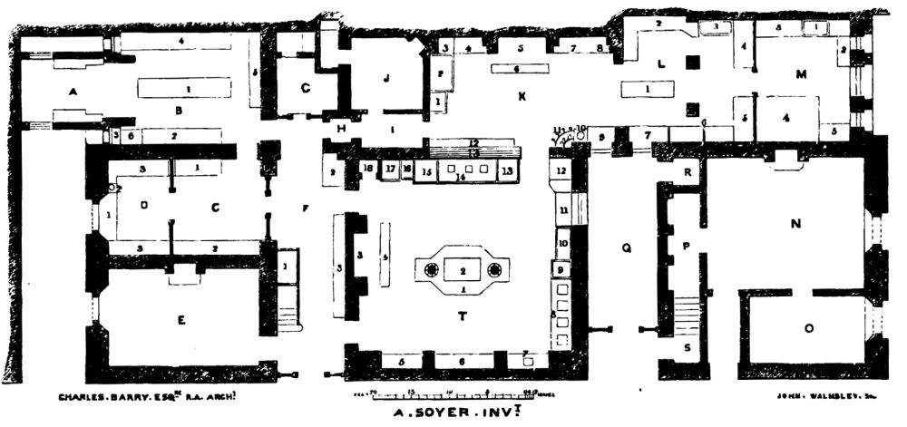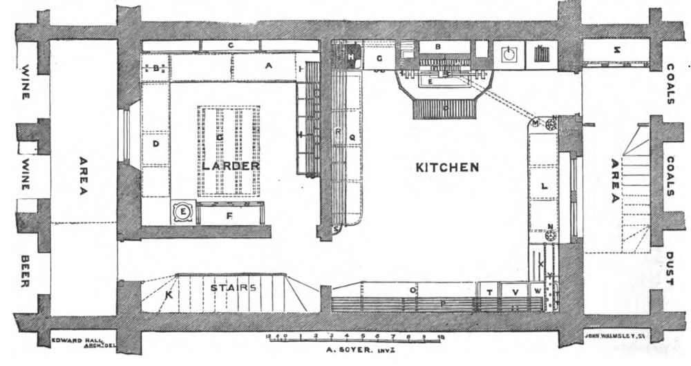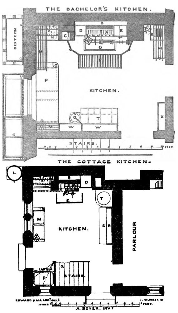 THE indefatigable Gastronomic Regenerator, Mons. Soyer, whose mind is always catering for the comfort and the taste of all classes of society, has not only given us a most useful work on Cookery, containing thousands of excellent receipts, but also various plans for the construction of kitchens, such as the matchless Kitchen of the Reform Club, the Kitchen of the Wealthy, his Kitchen at Home, the Bachelor’s, and the Cottage Kitchen.