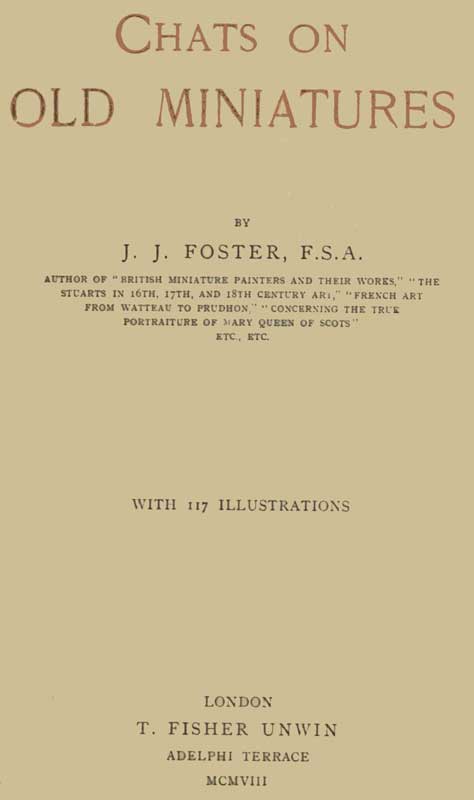 Acceding to the wish of my Publishers that the following pages should be included in a certain well-known series, I have termed them "Chats on Old Miniatures," but confess that I consider the title somewhat of a misnomer, inasmuch as I have been accustomed to regard "a chat" as a conversation between two or more persons interested in a given subject; whereas in this little volume it is obvious that I have done all the talking.