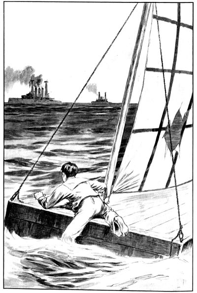 The poster represented a stalwart, barefooted jackie, in Uncle Sam's natty uniform, standing[Pg 6] on the flying-bridge of a battleship and "wig-wagging" the commanding officer's messages. The bright-red signal flag, with its white center, which he wielded, made a vivid splash of color. In the background a graphically depicted sea, flecked with "whitecaps," was pictured. As a whole, the design was one well calculated to catch the attention of all wholesome, adventurous lads, particularly two, who, like our new acquaintances, had never seen any water but the Hudson River. Indeed, as that majestic stream lay twenty miles from their home, they had only set eyes on that at long intervals.