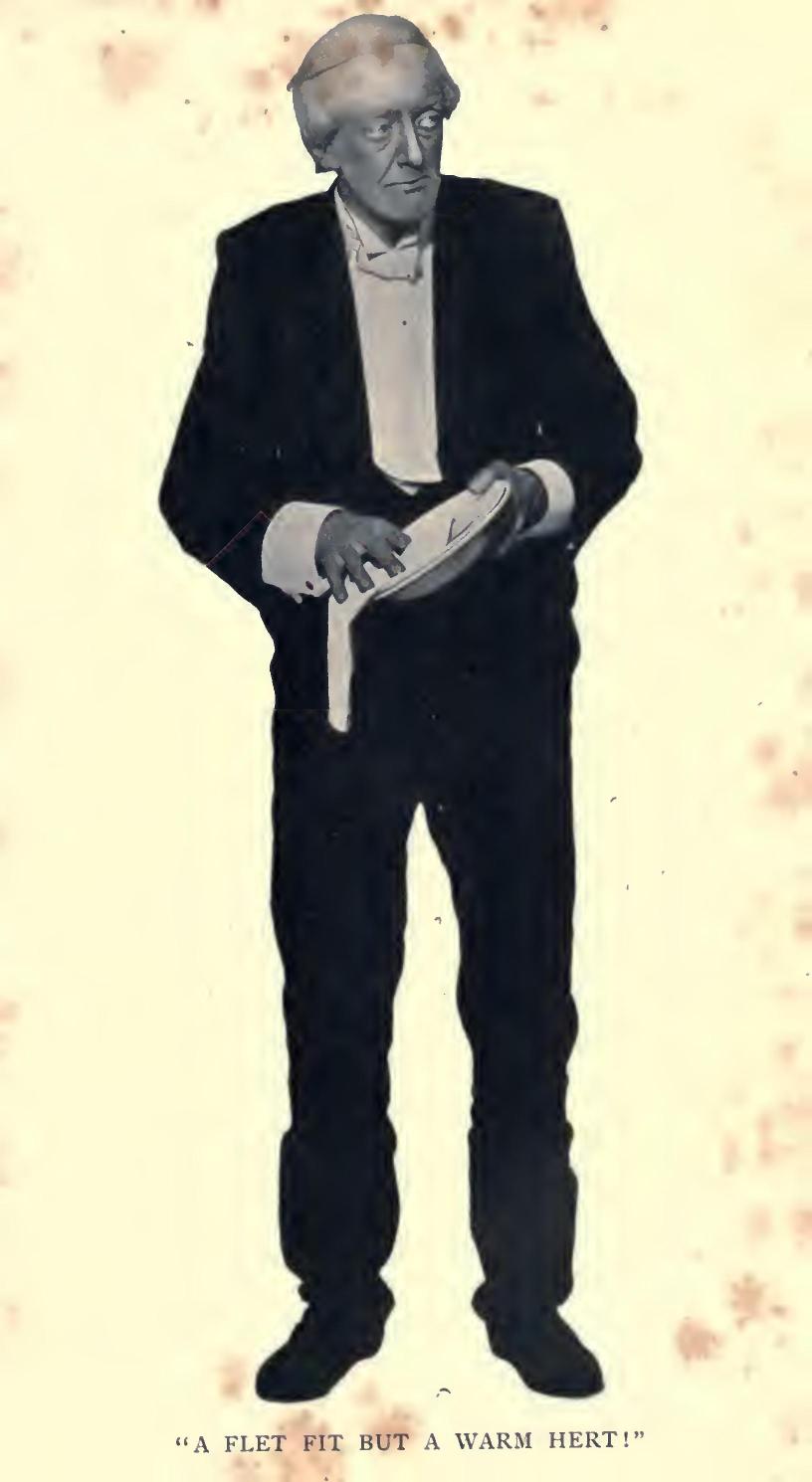 I suppose Mr MacPherson has been snibbing-in preachers in St Kentigern’s Kirk pulpit and then going for twenty minutes’ sleep in the vestry since the Disruption; and the more privileged citizens of Glasgow during two or three generations of public dinners have experienced the kindly ministrations of Erchie, whose proud motto is “A flet fit but a warm hert.” I think, however, I was the first to discover his long pent-up and precious strain of philosophy.