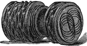 At first, it had not even a continuous rotary motion, but the spindle was driven by a belt worked by a spring pole or its equivalent. The belt was rolled round the spindle, and the pole allowed to spring up; the spindle then revolved the length of the belt, or rope, for belts were not thought of, and the operation was repeated, the work being done only when the force of the spring pole revolved the spindle and the job the right way.