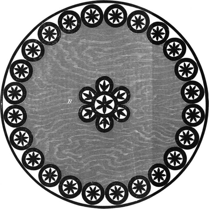 Of course, all these are small jobs, and small, fine work; when it comes to more elaborate patterns, such as are generally found on tables, work-boxes, musical boxes, and similar things, it requires more time, but as the pattern is large, it requires no particular patience beyond that which a very fine piece of work does. But where the pieces are small, as in mosaic, it takes a great deal of patience to pick up one after another, and no small degree of artistic talent to bring them all in in the right place.