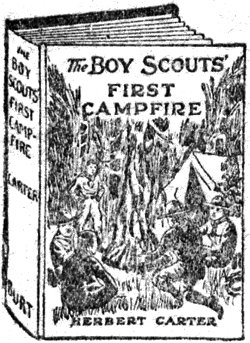 When this book and “The Boy Scouts on Sturgeon Island” were printed, the captions of their frontispiece illustrations were swapped. This eText restores the correct caption from that other book. The illustrations themselves (and the book name portion of the caption) were printed correctly. For reference, the other book’s caption is: