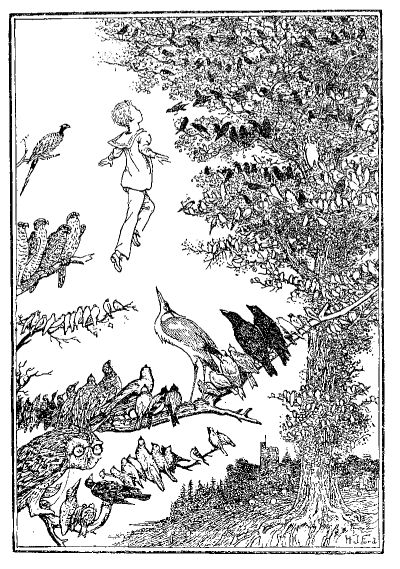 For one moment he stood quite still, feeling that it was no use to go on if the birds, too, were his enemies. But then he heard a whistle of wings close above him, and a voice said: