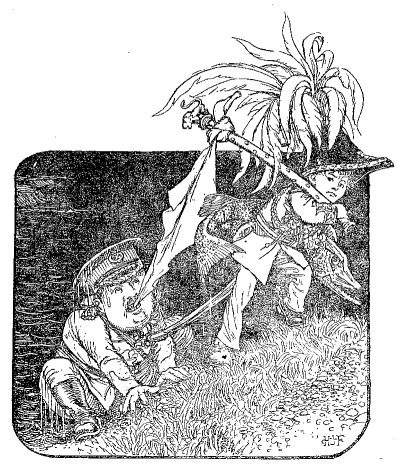 He never got further than that because, if it proved to be Mr. Winfall, Mr. Winfall ate him whether he had an apple inside or not, and if it was Grandmamma Apple-tree, she was so indignant, as every proper female should be at being taken for a man, that she began abusing Colonel Dumpling in a red voice if she was ripe, and a green one if she wasn’t, and gave the whole show away. So she lost an arm or a leg if there were many people in the house, or a finger or two if father and mother were alone, and Colonel Dumpling said to his regiment: