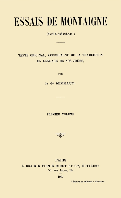 Title: Essais de Montaigne (self-édition) - Volume I