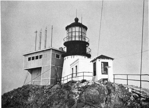 Cape Flattery Lighthouse was built in 1857, but only after great difficulties with the Indians. Before commencing the lighthouse, it was necessary to build a blockhouse, and 20 muskets with ammunition were furnished for protection against Indians from the Canadian side of the Strait. Shortly after the light was completed the keeper resigned because he was annoyed by the numerous Indians who used the island as a fishing and whaling station. Cape Flattery Lighthouse is now electrified, and is fitted with a diaphone fog signal and a radiobeacon.