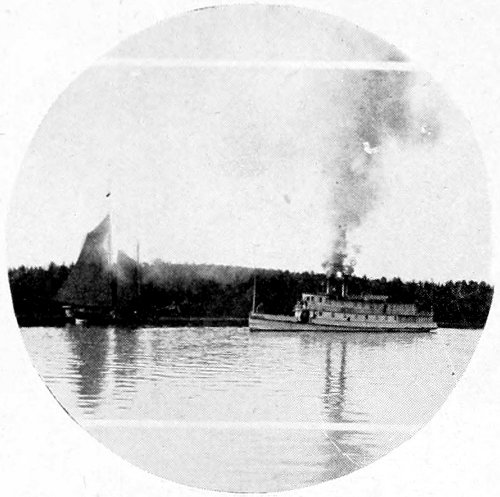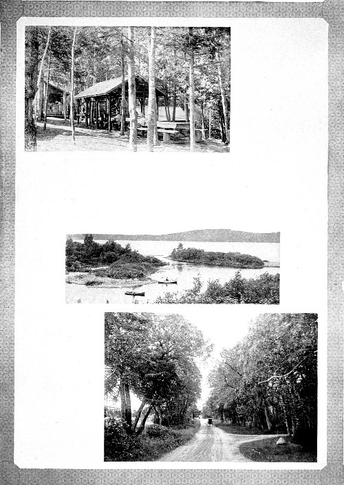 In all districts that are rich in such beauties it is best to tarry 310 at the nearest hostelry and enjoy the country by rambling about on foot. If such excursions are supplemented by trips in canoe, row-boat, sail-boat, and motor-boat of ordinary speed, an intelligent view of the country, its people, and its great resources of natural beauty will then be possible—a view that would not be within the reach of those who limit the field of observation to what may be seen from the seat of a speeding automobile.