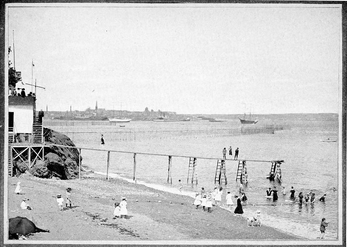 The bathing waters of the provinces offer various temperatures to suit different classes of bathers. Leaving out of consideration river and lake bathing, the sea-bathing waters will be found to offer a considerable range of temperature. The inner waters of the *Bay of Chaleur, and the various places along the *Gaspé Peninsula, along the Northumberland Strait shore, and those of *Prince Edward Island generally, will be found best suited to the average bather. Many go to the St. Lawrence River resorts between Murray Bay and Little Métis because there the water is warmest. This is not river bathing as some might suppose, for even at Murray Bay resorts one bathes in the briny water of old ocean. As the St. Lawrence River reaches the Gulf it broadens to ocean proportions, and at *Little Métis and *Matane, and along the Gaspé shores, bathing in pleasantly-warmed sea water may be enjoyed. Prince Edward Island enjoys a reputation for pleasant bathing at a moderate temperature, but as the outer waters near Cape Breton are reached, an increasing coolness is noticeable, until the outer Atlantic shore is gained, and here, of course, the tidal water is the coldest, and best suited for those of robust physique. West and east of Halifax, however, there are numerous inner waters of lagoon or almost land-locked character, and many outer bay waters, too, where the sun warms the sand shoals at low tide, and where, consequently, warmer bathing may be enjoyed than that found on the open or outlying beaches.
