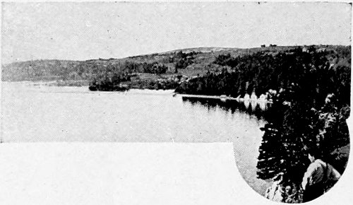 The scenery in and around Whycocomagh is very beautiful, and its picturesque bay has been called the “Naples of America.” The country round about is most varied, and from the top of Salt Mountain a splendid view is commanded; nor is it necessary to climb that height unless so disposed, for the scenery by the shores of the bay is exceedingly fine. Whycocomagh is an ideal centre for boating and canoeing, and here, as at Baddeck, splendid opportunities exist for enjoyable cruises by motor-boat. There is bathing also, and 296 fishing; and many pleasant days may be spent at this peaceful little resort.