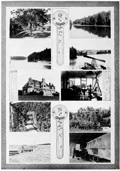 The estate is one that may be termed a perfect heaven for the absorbed worker in scientific, literary or other mental effort requiring surroundings favorable for concentration of thought. Here with machine and wood-working shops, electrical laboratory, erecting places and store houses for aeroplanes, wharves, shelter houses and lake for testing hydroplanes, the busy inventor works away a good part of the year when not at his Washington home.