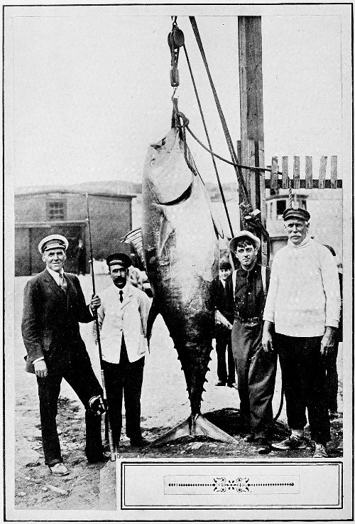 That giant fish the Albacore, or leaping-tuna, weighing from 500 to 800 pounds and over, is caught along the North Atlantic coast in certain favored spots. At Lockeport and other places on the South Shore of Nova Scotia they are caught in great trap nets. They are also caught off the Cape Breton coast; and as the honor of catching the first of these monstrous fish with rod and line not far from Sydney fell to the well-known sportsman, Mr. Ross, of Montreal, a description from Patillo of a hand-line expedition for albacore is here given.