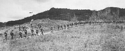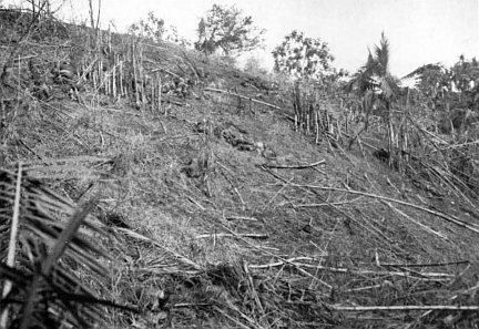 The 3d Marines on the left of the division’s zone had progressed with the same occasional enemy opposition. A 19-man roadblock held up the Marines, but was taken out quickly. Searching a corridor between the 3d and the 9th Marines, the 21st Marines came upon the bodies of 30 Guamanians near Chaguian. They had been beheaded.