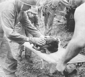 In the 21 days of the Guam campaign ending 10 August, Marine units of the III Amphibious Corps reported 1,190 men killed in action, 377 dead of wounds, and 5,308 wounded. The 77th Division’s casualties were 177 soldiers killed and 662 wounded. The Army and the Marines were a closely knit team in the recapture of Guam. It is reputed that General Holland Smith was the first to refer to General Bruce’s troops as the “77th Marines.” Major Aplington, a battalion commander in the 3d Marines, commented on the soldiers: