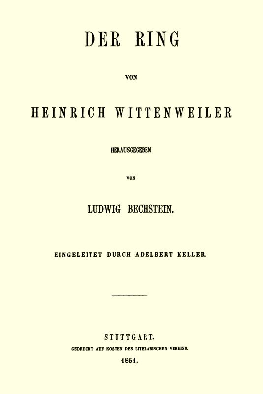 Das gedicht der Ring, von welchem, wie es scheint, noch kein litterarhistoriker berichtet hat, erscheint hier zum ersten mal im drucke.