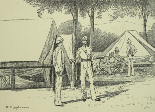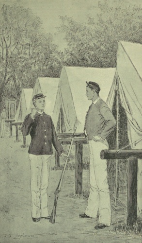 And with such friends at his back, what young soldier would not feel pride and hope and confidence? Then came the close of the examination, the announcement of class standing; and Geordie had clambered out of the twenties and well up into the teens, standing second in drill regulations (as they are called to-day), third in discipline, well up in drawing, though still in middle sections in the philosophical and chemical courses. Ames was easily head, Benton third, Ross fourth, and Connell fifth. And then came the order to move into camp, and our Geordie found himself, with his second lieutenant for mate, occupying the north end tent of the company officers' row—the tent which, three years before, bucket laden, and with shoulders braced and head erect, he had passed and repassed so many times, never dreaming he should become so thoroughly and easily at home within the white walls, into whose depth it was then profanation to gaze.