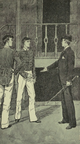 And Benny's story corroborated much of poor Doyle's. Jennings had halted him down by the water-tank that wretched night in camp, pointed out how Pops was being shown too much favoritism and getting the "big head." Jennings put him up to getting Graham's rifle—a matter that was easily accomplished in the darkness and the deserted street of Company B; but he never meant it for anything more than a joke, though he was jealous of Graham's success, and did think that he was having too much partiality shown him. Then when Jennings told him to take the rusty rifle to the tent in place of the new one, he wanted to back out; but it was too late. Jennings bullied and threatened him with exposure and dismissal for stealing, etc.—threatened even then to call the corporal of the guard and have him taken to the guard-house, caught in the act. He was bewildered and terrified, and ended by doing exactly as he was told. Then came that dreadful day of investigation, followed later by Jennings's arrest; and then Jennings told him of their desperate plight, and bade him wire for his father to come at once. Jennings told him what to say to his father, and wrote a letter, setting forth what would happen if the drum-boy could not be "fixed," and suggesting how to fix [265]him. His father was utterly dismayed at the scrape that Benny was in, and accepted all Jennings's statements. He did not, of course, consult any of the officers, but carried out everything proposed to the letter. For the time being the boys were saved, but within another year Benny learned from the other drum-boy, Reilly, the one with whom he had had the trouble, that Doyle had let the cat out of the bag. Then he had to bribe Reilly. Then Jennings, too, levied on him, and his father later on, while on furlough; and after his father's death poor Benny's life was one succession of torments. Doyle, Reilly, and Jennings, too, "bled" and threatened him time and again, until in his desperation he sought to make a clean breast of it all to Graham. That night Jennings suspected his object, overtook him in the hall, seized and choked and carried him back, and nearly finished him by strangulation before rescue came. Benny was ready to stand trial—suffer any punishment; but by this time the poor fellow's prostration and penitence, his mother's tears and anxiety, and the fact that he had been throughout the entire history of the affair only a cat's-paw, coupled with the reports of the surgeons that he was in no condition to face a trial, all prevailed. It was late in February before he was sufficiently recovered to be moved about, and then sick leave [266]of absence was granted, and he with his devoted mother left for Nassau. He had parted company with the old class for good and all, and was ordered to report in June and join the class below.