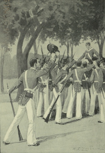 May, with its sunshine and showers and long languorous days—"the days of spring fever and spring fights," as the cadets used to say—found the relations between Geordie and his company more and more cordial. All through the year, with absolute impartiality and quiet force, he had done his duty to the best of his ability, and Connell, with all his pride in "old D," was the last to claim for it a superiority over the color company. Bend declared he never had to bother his [269]head about it at all. He marched it out to parade or inspection, but his first sergeant looked to the discipline. Among the officers of the tactical department, too, there was no lack of appreciation of the way in which "McCrea's plebe" had won his way up the ladder of promotion, and the relative position of the cadet officers for the coming summer was already a problem over which the corps was indulging in much speculation and the commandant in no little thought. The two finest positions, as has been said, are those of first captain and adjutant. The former commands the battalion in the mess-hall and on its way to and from the same, while the latter has the most conspicuous part to play at parade, guard-mounting, and the like. The first captain is assigned to the right flank, Company A, and his responsibilities are great. He requires dignity and strength of character beyond the other officers. The adjutant should be a model in bearing, carriage, voice, command, but his duties are more picturesque than formidable. As a rule, these high offices—the captaincies, adjutancy, etc.—are given to cadets whose scholarship and class standing are also high; for in the greater number of cases soldierly ability and character are there to be found. Yet it often happens that the head of the First Class is only a private in the ranks, and the senior captain or [270]the adjutant comes from the other end of the line. When graduation is close at hand, however, the commandant makes out a list of the recommendations for the coming year, and this he submits to the superintendent. His wishes generally carry all possible weight.