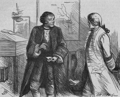 But the wish to relieve was so largely in excess of the power, that frequently when Justice called to present a claim for payment Generosity had been beforehand, and had carried away the money; and Justice had to wait, or, alas, in too many cases, to go away unsatisfied. Thus the most humiliating position in which Goldsmith was ever placed in the days of his direst poverty, arose from his hastily obeying an impulse to relieve the landlord of his miserable lodgings, who had been arrested for debt, and whose wife came to Goldsmith, weeping and wringing her hands. Thinking only how he could liberate the poor man by the only means in his power, the poet rushed off and pledged some books, and a suit of clothes, procured on the credit of Ralph Griffiths, a bookseller, that Goldsmith might appear decently at an examination, which he failed to pass, and dire was the wrath of Griffiths on the occasion.