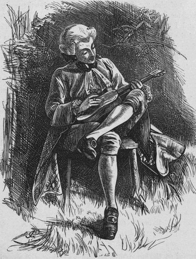 By various means he made a shift to live. At one time he pounded drugs for an apothecary near London Bridge; at another, he attempted to practise physic amongst the poorest of the poor. Now we find him correcting press proofs for a printer; and now he is settled for a time as usher in Dr. Milner's boys' school at Peckham. We have a picture of him here, drawn by Miss Milner, the principal's daughter. He is described as exceedingly good-natured, always ready to amuse the boys with his flute, giving away his money, or spending it in tarts and sweetmeats for the boys as soon as he received it, and generally recommending himself by his amiability and kindliness of heart. But Goldsmith himself considered this servitude at the Peckham Academy as the most dreary period of his life. The position of an usher was at that time, if possible, worse than it is now; and the mortifications he experienced at Peckham helped to throw a shadow over his later life.