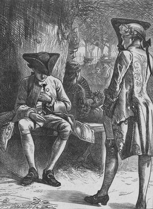 "Every day now began to strip Jack of his former finery: his clothes flew piece by piece to the pawnbrokers'; and he seemed at length equipped in the genuine mourning of antiquity. But still he thought himself secure from starving; the numberless invitations he had received to dine, even after his losses, were yet unanswered; he was, therefore, now resolved to accept of a dinner, because he wanted one; and in this manner he actually lived among his friends a whole week without being openly affronted."