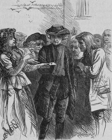 "I love a straggling life above all things in the world; sometimes good, sometimes bad; to be warm to-day, and cold to-morrow; to eat when one can get it, and drink when (the tankard is out) it stands before me. We arrived that evening at Tenterden, and took a large room at the 'Greyhound,' where we resolved to exhibit Romeo and Juliet, with the funeral procession, the grave, and the garden scene. Romeo was to be performed by a gentleman from the Theatre Royal in Drury Lane; Juliet, by a lady who had never appeared on any stage before; and I was to snuff the candles: all excellent in our way. We had figures enough, but the difficulty was to dress them."